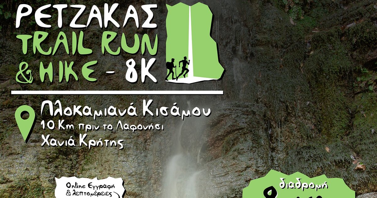 Η Περιφερειακή Ενότητα Χανίων, ο Δήμος Κισάμου, ο Μορφωτικός Πολιτιστικός Αθλητικός Σύλλογος Πλοκαμιανών Κισάμου, η ομάδα του Λαφονήσιου Δρόμου - Ιναχώριες Διαδρομές και η Ομάδα Δρομέων Υγείας Κισάμου, διοργανώνουν αγώνα τρεξίματος ανωμάλου δρόμου αλλά και πεζοπορίας με την ονομασία “Ρέτζακας Trail Run & Hike” που θα λάβει χώρα την Κυριακή 6 Φεβρουαρίου 2022 και ώρα 10:30 π.μ. , στην ημιορεινή περιοχή Πλοκαμιανών, Βάθης, Τζιτζιφιάς (Δ.Ε. Ιναχωρίου, Δήμου Κισάμου, 10 χλμ. πριν το Λαφονήσι).