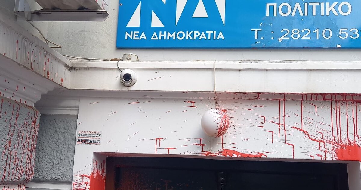 Άγνωστοι έριξαν μπογιές στο πολιτικό γραφείο της βουλευτή Χανίων της ΝΔ, Σέβης Βολουδάκη, τα ξημερώματα της Δευτέρας.