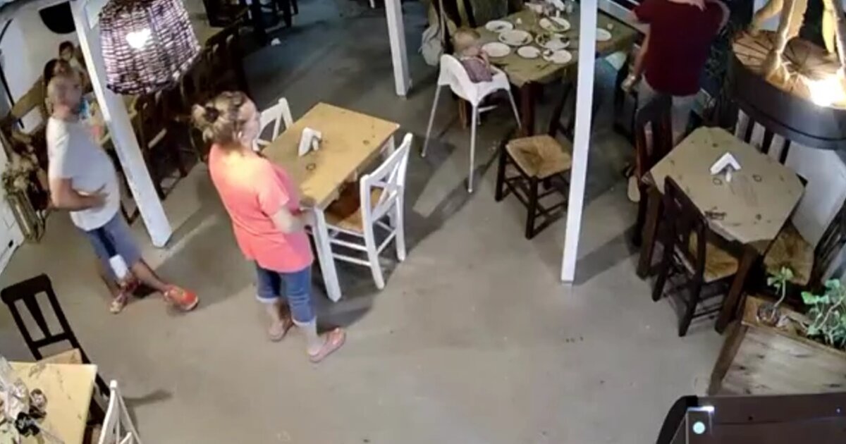 Στο υλικό από την κάμερα του καταστήματος, φαίνεται ένα κοριτσάκι να τρώει με την οικογένεια του και ξαφνικά να μην μπορεί να πάρει ανάσα...