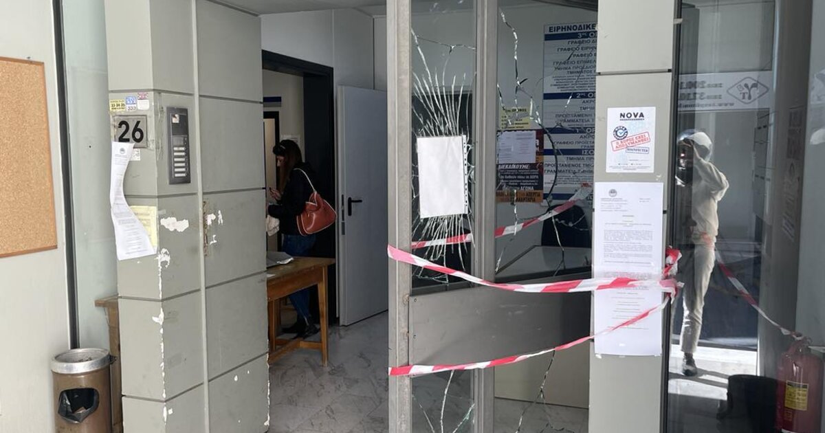 Την τζαμαρία του κτιρίου του Ειρηνοδικείου Ηρακλείου έσπασαν άγνωστοι δράστες, με τους δικαστικούς υπαλλήλους να αντικρίζουν έκπληκτοι το θέαμα, το πρωί της Παρασκευής.