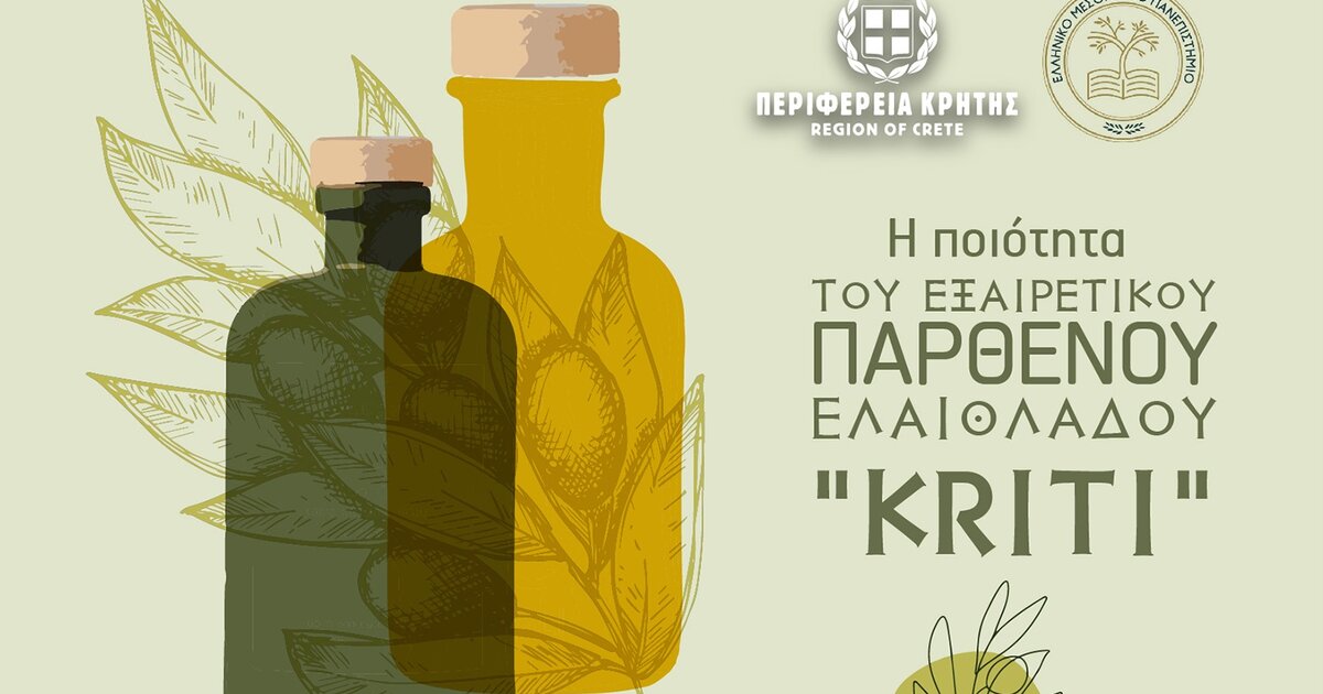 Η Περιφέρεια Κρήτης και το Ελληνικό Μεσογειακό Πανεπιστήμιο, σε συνεργασία με το Δήμο Ρεθύμνου, διοργανώνουν εσπερίδα με τίτλο «Οργανοληπτική αξιολόγηση του Εξαιρετικού Παρθένου Ελαιόλαδου “Kriti” και οι παράγοντες που την επηρεάζουν», η οποία θα πραγματοποιηθεί την Παρασκευή 2 Αυγούστου 2024, στις 17:00 μ.μ., στο Οργανοληπτικό Εργαστήριο Κρήτης στις εγκαταστάσεις της Ένωσης Ρεθύμνου στα Τρία Μοναστήρια. Την εκδήλωση υποστηρίζουν οι: Σύνδεσμος Εξαγωγέων Κρήτης, Σύνδεσμος Τυποποιητών Ελαιολάδου Κρήτης, Σύνδεσμος Ελαιοκομικών Δήμων Κρήτης, Δίκτυο Κρητικού Ελαιολάδου, Σύνδεσμος Ελαιουργών Ν. Ηρακλείου.