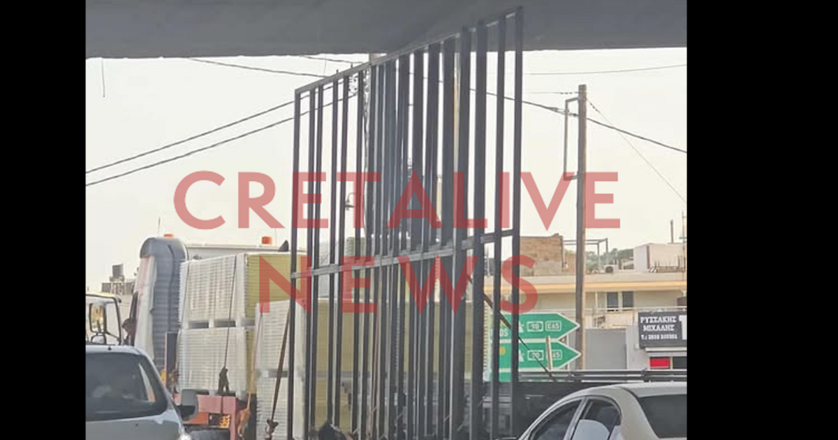 Μεγάλη αναστάτωση δημιουργήθηκε το απόγευμα της Παρασκευής στην περιοχή του Εσταυρωμένου, στο Ηράκλειο, όταν - όπως αναφέρουν μάρτυρες αλλά μπορείτε να δείτε και στις εικόνες- μια νταλίκα που έφερε σιδερένια κατασκευή σφήνωσε κάτω από τη γέφυρα, προκαλώντας κυκλοφοριακό εφιάλτη, όπως περιγράφουν.