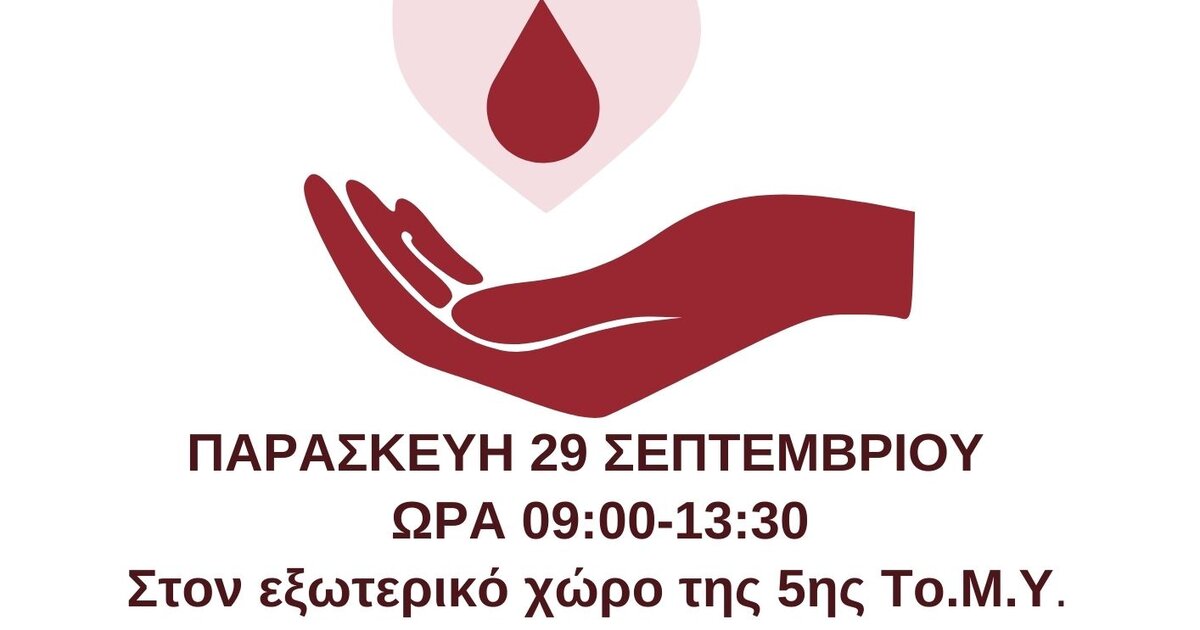 Την Παρασκευή 29 Σεπτεμβρίου 2023 από τις 09.00 π.μ. έως 1.30 μ.μ. η 5η ΤοΜΥ Ηρακλείου, σε συνεργασία με το Κέντρο Αιμοδοσίας Βενιζελείου, διοργανώνουν και θα πραγματοποιήσουν εθελοντική αιμοδοσία, στο χώρο εξωτερικά της Μονάδας Υγείας, στην Οδό Εμμανουήλ Ξάνθου 31 στον Κατσαμπά.