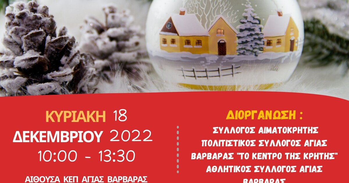 Την Κυριακή 18/12/2022 στο ΚΕΠ Αγίας Βαρβάρας και ώρες 10:00- 13:30