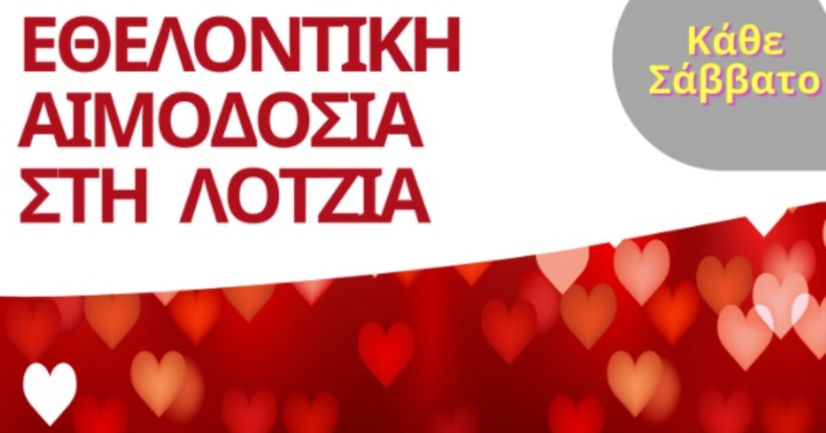 Η Εθελοντική Αιμοδοσία πραγματοποιείται κάθε Σάββατο, στο αίθριο της Λότζια.