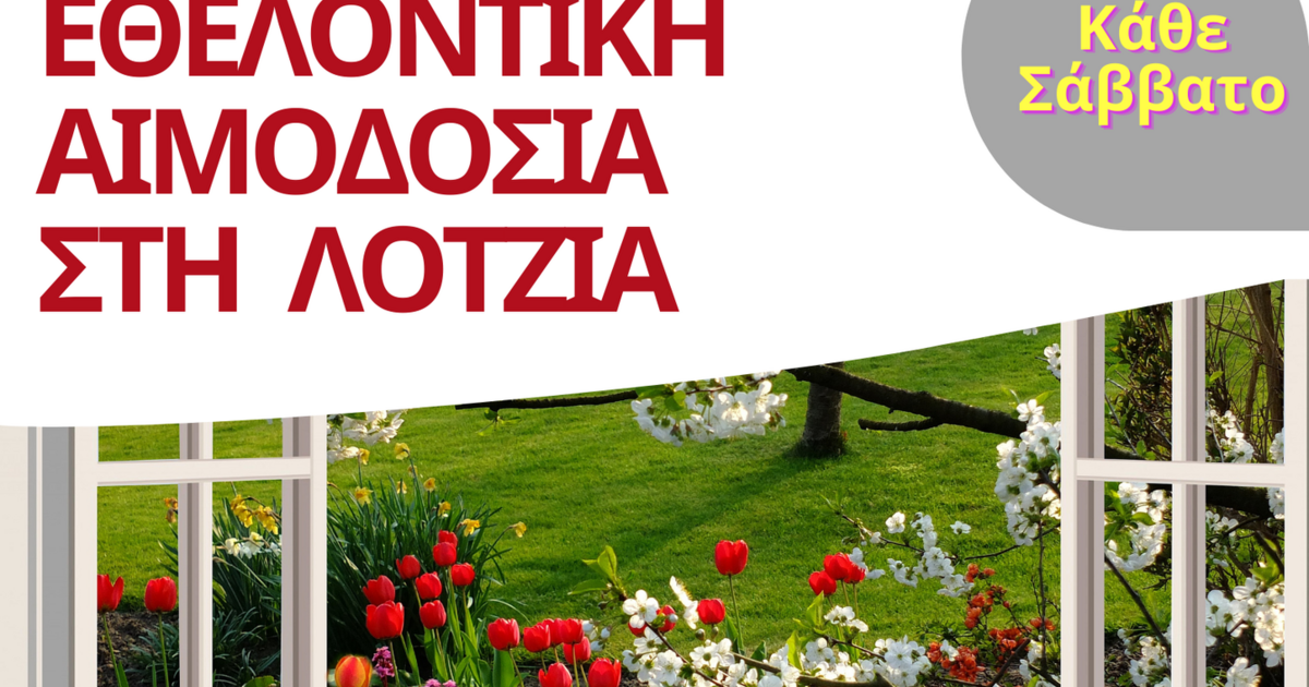 Η Εθελοντική Αιμοδοσία πραγματοποιείται κάθε Σάββατο, στο αίθριο της Λότζια.