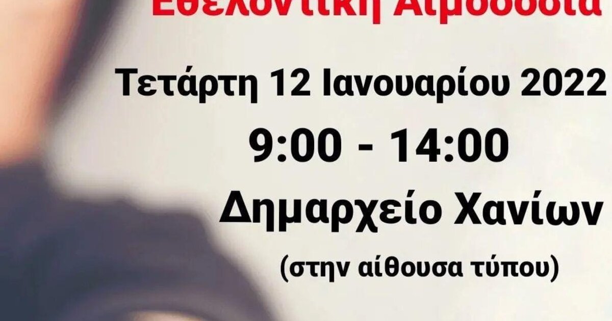 Στις 12 Ιανουαρίου από τον Δήμο Χανίων και τον Σύλλογο Εθελοντών Αιμοδοτών «Ο Άγιος Ιωάννης»