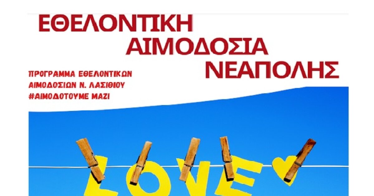 Την αιμοδοσία συντονίζει ο Παγκρήτιος Σύνδεσμος Εθελοντών Αιμοδοτών και Δωρητών Οργάνων Σώματος «Αιματοκρήτης» υπό την αιγίδα του Δήμου Αγίου Νικολάου, με συνδιοργανωτές φορείς την Δημοτική Ενότητα Νεάπολης, τον Εμπορικό Σύλλογο Νεάπολης, το Σώμα Ελληνικού Οδηγισμού-τοπικό παράρτημα Νεάπολης Λασιθίου, την Αθλητική Ένωση Νεάπολης, τον Ποδηλατικό Όμιλο «Δρήρος» Νεάπολης Λασιθίου, τον Πολιτιστικό Σύλλογο Νεάπολης «Νέοι Νεάπολης» και τον Πολιτιστικό Σύλλογο Βρυσών. Οι αιμοληψίες θα πραγματοποιηθούν από τη κινητή μονάδα αιμοδοσίας του Πανεπιστημιακού Γενικού Νοσοκομείου Ηρακλείου ενώ εθελοντές του «Αιματοκρήτη» θα είναι παρόντες για την ενημέρωση και καθοδήγηση των αιμοδοτών.