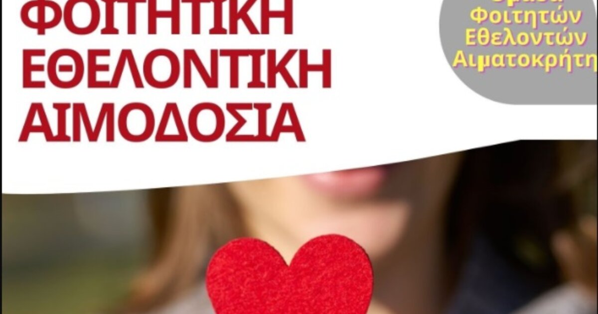Εθελοντική αιμοδοσία θα πραγματοποιηθεί το Σάββατο 12/03/2022, στο κέντρο της πόλης του Ηρακλείου (στο Αίθριο της Λότζια), από τις 09:30 έως τις 14:00.