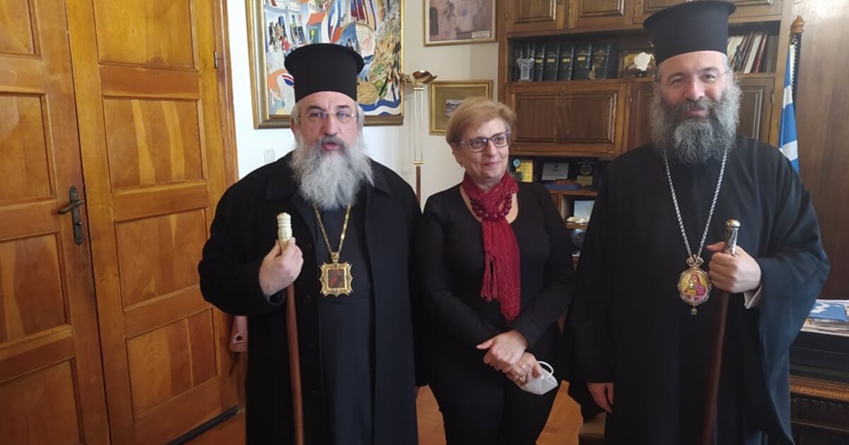 Εξάλλου, τον Σεβασμιότατο Αρχιεπίσκοπο Κρήτης κ.κ. Ευγένιο και τον Σεβασμιότατο νέο Μητροπολίτη Ρεθύμνης και Αυλοποτάμου κ.κ. Πρόδρομο υποδέχθηκε στο γραφείο του σήμερα (Δευτέρα 21 Μαρτίου) και ο Δήμαρχος Ρεθύμνης, κ. Γιώργης Μαρινάκης.