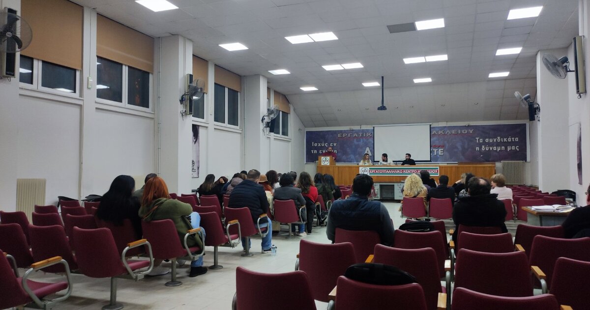 …Δεν υπάρχει άλλη επιλογή για μας από το να οργανώσουμε μία μαζική δυναμική απεργιακή μάχη την Τετάρτη 28 Φλεβάρη και στο Ηράκλειο. Να βρωντοφωνάξουμε πως στο δίλημμα τα κέρδη τους ή οι ζωές μας εμείς απαντάμε οι ζωές μας και το κάνουμε πράξη μέσα από τους αγώνες μας!»
