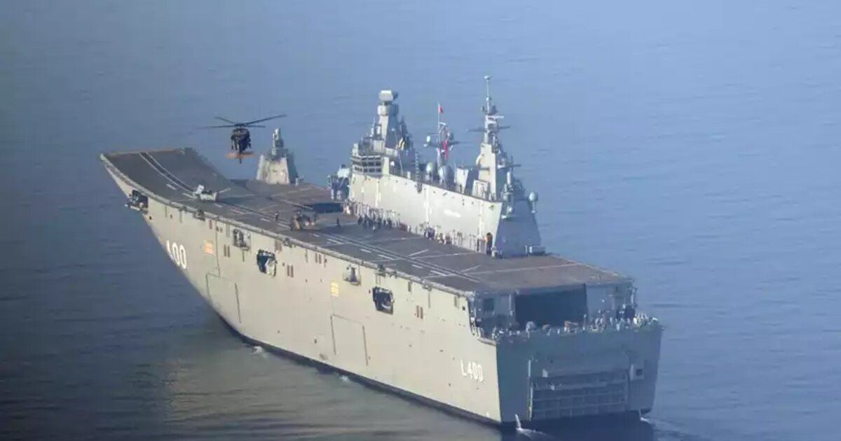 Μετά την παράδοση στο ναυτικό, αποβατικά σκάφη που μετέφεραν σώμα πεζοναυτών φορτώθηκαν στο πλοίο μήκους 231 μέτρων και πλάτους 32 μέτρων.