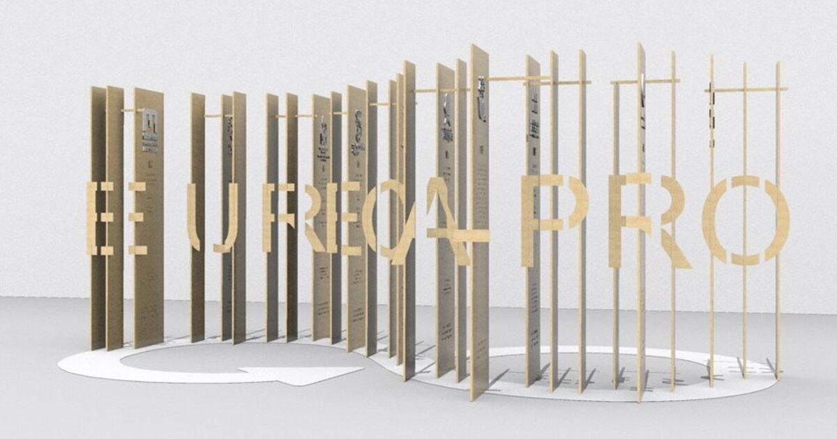 Αφετηρία των σχεδιαστικών αναζητήσεων της ομάδας στάθηκε ο κλασικός τύπος στύλου με πινακίδες που αναγράφουν τις αποστάσεις διαφορετικών πόλεων και προορισμών, αλλά και η αναμορφική τέχνη. Κάθε ένα από τα 9 γράμματα της ονομασίας “EURECA-PRO” αποδίδεται σε ένα από τα 9 πανεπιστήμια-εταίρους του EURECA-PRO και κάθε γράμμα αποδομείται εικαστικά σε τρία τμήματα, τα οποία συνολικά απλώνονται στον χώρο, παίζοντας με την προοπτική.