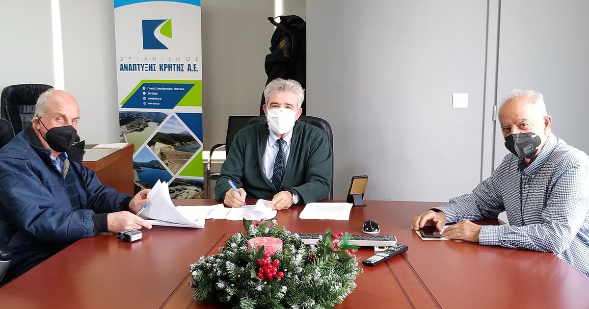 Η σύμβαση που αφορά το έργο «Γεωτρήσεις και Δοκιμές Εισπίεσης για τον καθορισμό των εργασιών στεγάνωσης του Φράγματος Βαλσαμιώτη» υπογράφηκε την Παρασκευή 07/01/2022 στις εγκαταστάσεις του Οργανισμού Ανάπτυξης Κρήτης, στην Αγυιά Χανίων.