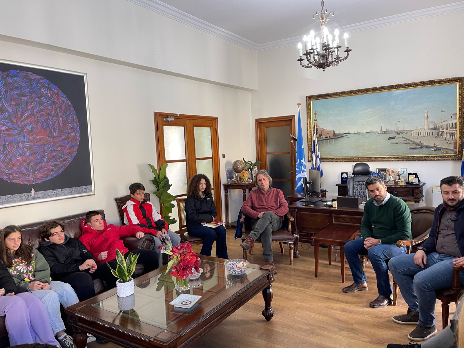 Τον Δήμαρχο Χανίων, Παναγιώτη Σημανδηράκη επισκέφθηκαν μαθητές από την Α΄, Β΄και Γ΄ τάξη του 2ου Γυμνασίου Χανίων, στο Γραφείο του στο Δημαρχείο, συνοδευόμενοι από τον Διευθυντή του Σχολείου κ. Αντώνη Αθανασάκη και τον καθηγητή Τεχνολογίας και υπεύθυνο του τμήματος Ρομποτικής κ. Χρήστο Ραχιώτη.