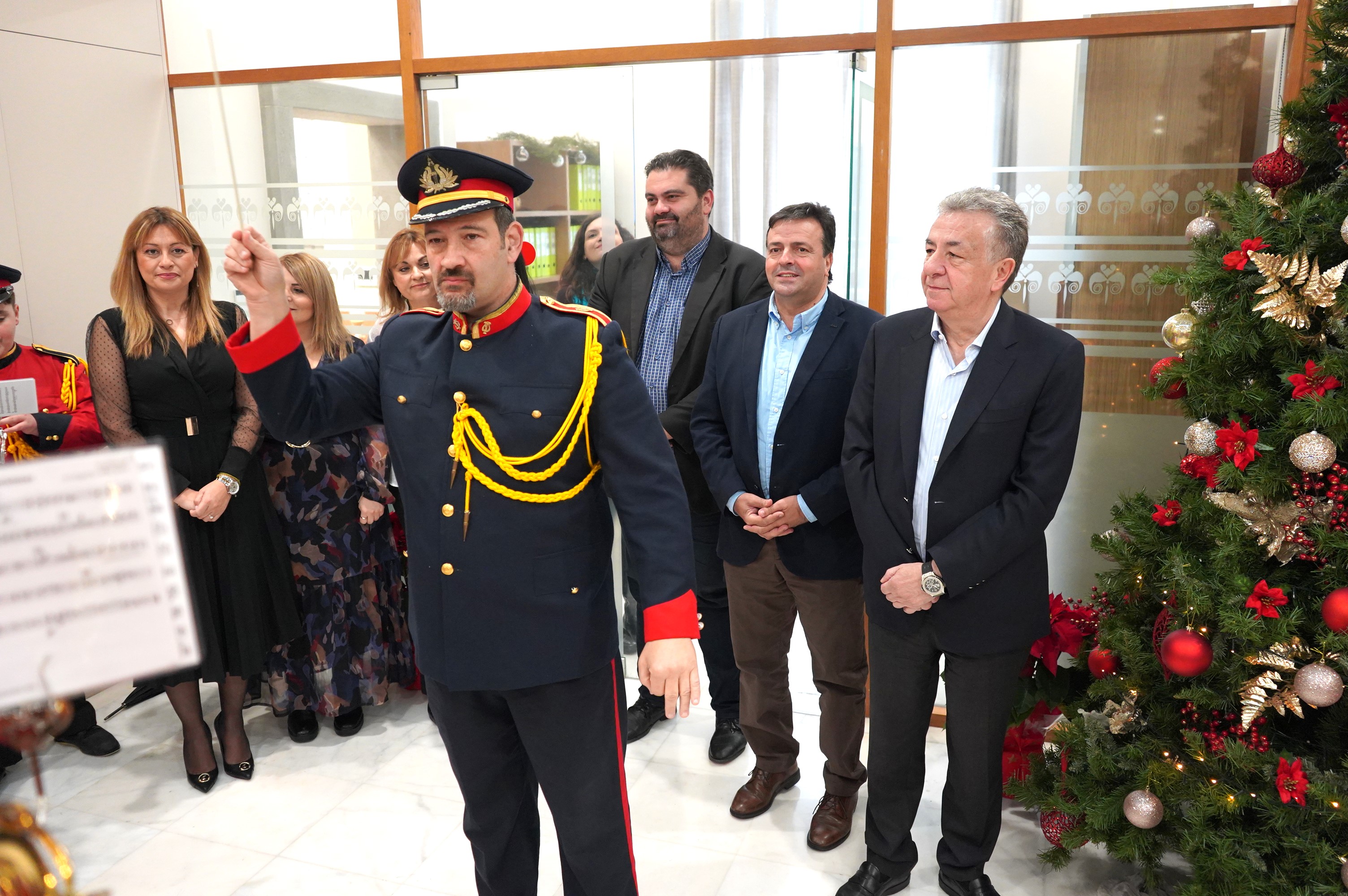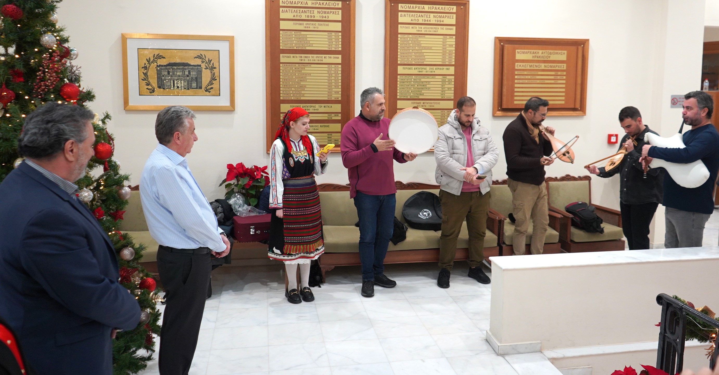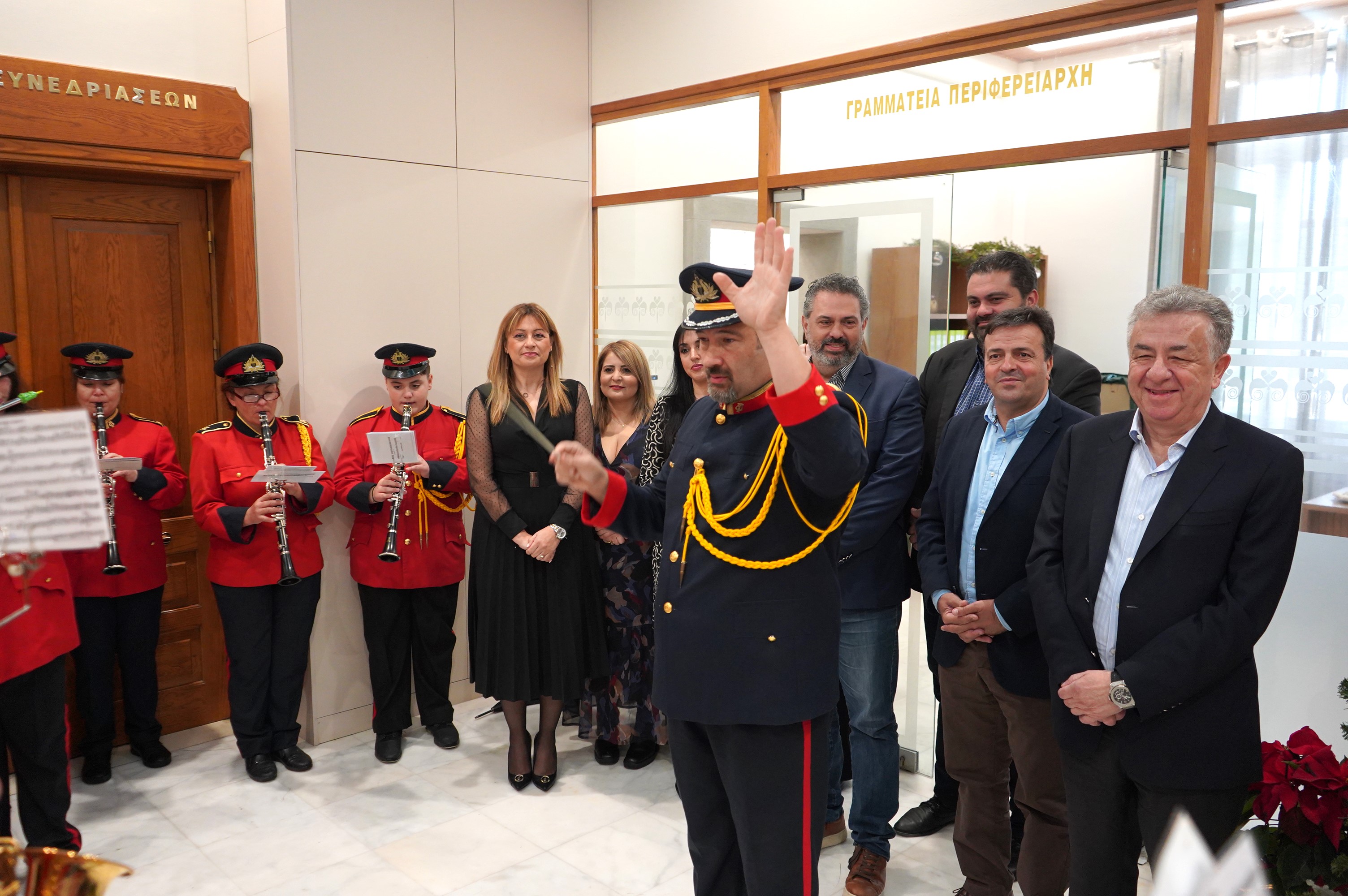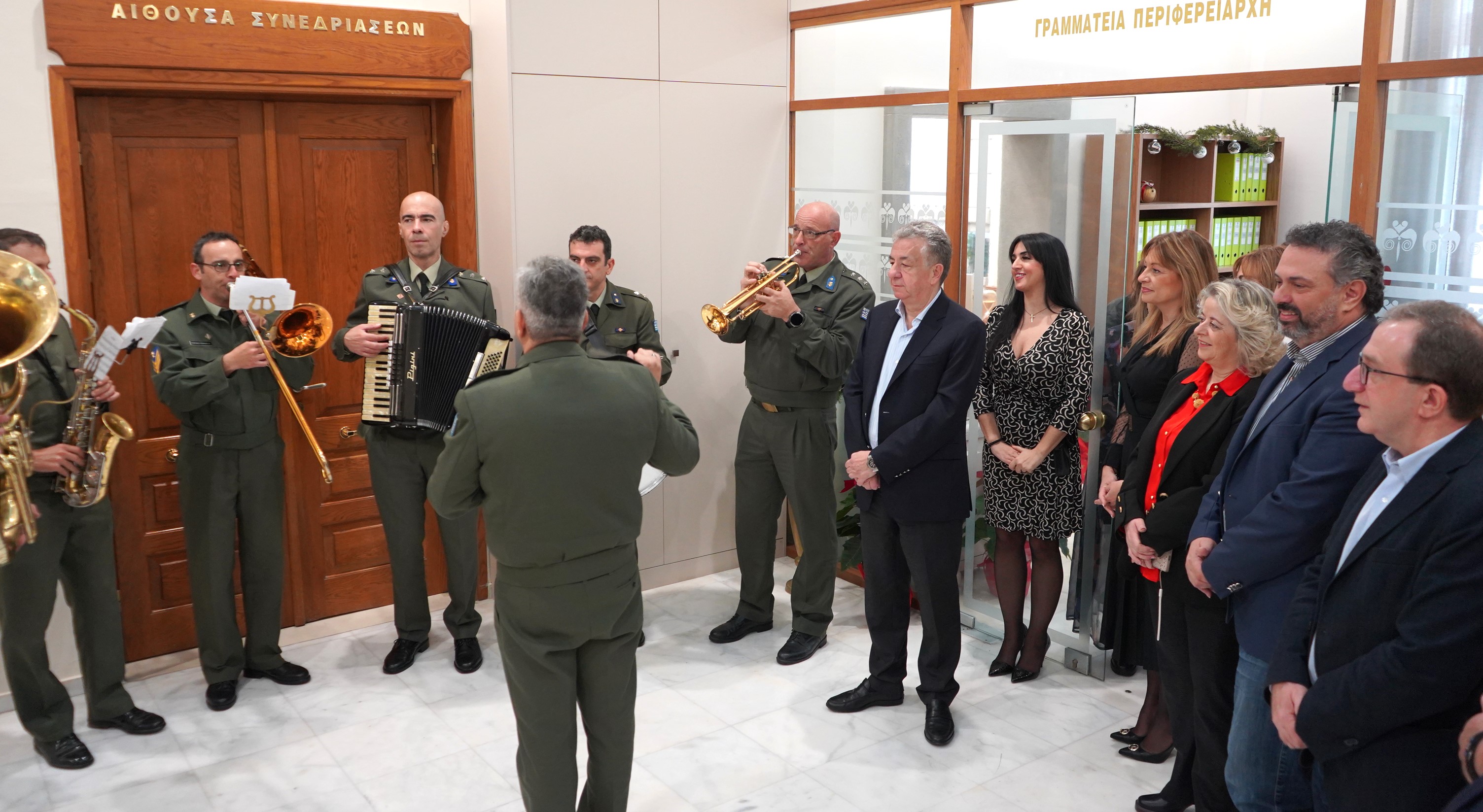 Με κάλαντα και χριστουγεννιάτικα τραγούδια ευχήθηκε η φιλαρμονική του Δήμου Ηρακλείου σήμερα στον Περιφερειάρχη Κρήτης, τους Αντιπεριφερειάρχες, μέλη του Περιφερειακού Συμβουλίου και εργαζόμενους της Περιφέρειας Κρήτης.
