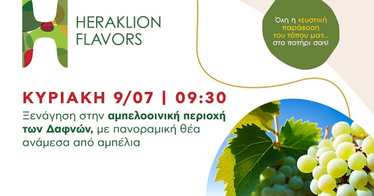 «Το Φεστιβάλ Heraklion Flavors συνεχίζει το ταξίδι του στην ενδοχώρα του Ηρακλείου «συστήνοντας» σε επισκέπτες και ντόπιους, τον πλούτο της γαστρονομίας και της οινικής παράδοσης. Η πρωτοβουλία του Δήμου και του Αναπτυξιακού Οργανισμού Ηρακλείου στοχεύει στην ανάδειξη της γαστρονομικής και πολιτιστικής κληρονομίας της Κρήτης και υλοποιείται μέσα από μια σειρά εκδηλώσεων, οι οποίες κορυφώνονται με το Φεστιβάλ Γαστρονομίας, τον Σεπτέμβριο στο λιμάνι του Ηρακλείου».