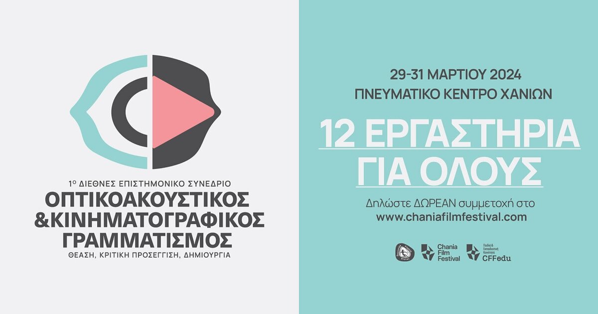 Με 12 βιωματικά εργαστήρια για όλους έρχεται από το CFF στο 1o Διεθνές Επιστημονικό Συνέδριο με θέμα "ΟΠΤΙΚΟΑΚΟΥΣΤΙΚΟΣ και ΚΙΝΗΜΑΤΟΓΡΑΦΙΚΟΣ -ΓΡΑΜΜΑΤΙΣΜΟΣ" στο Πνευματικό Κέντρο Χανίων στις 29-31 Μαρτίου 2024