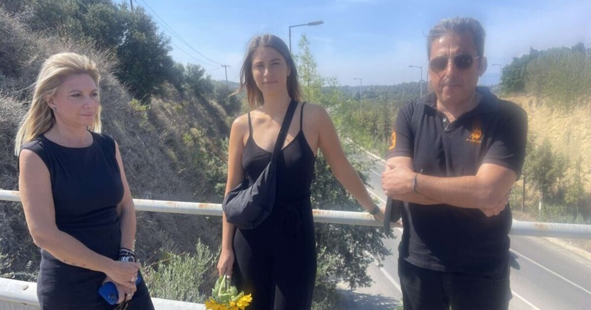 Φόρο τιμής στο σημείο της τραγωδίας με τα τρία νεαρά παιδιά επί του ΒΟΑΚ στο ύψος του Γαλατά στα Χανιά, απέτιναν οι δύο γονείς που έχασαν τα δικά τους παιδιά στο σιδηροδρομικό δυστύχημα των Τεμπών, Μαρία Καρυστιανού και Παύλος Ασλανίδης.
