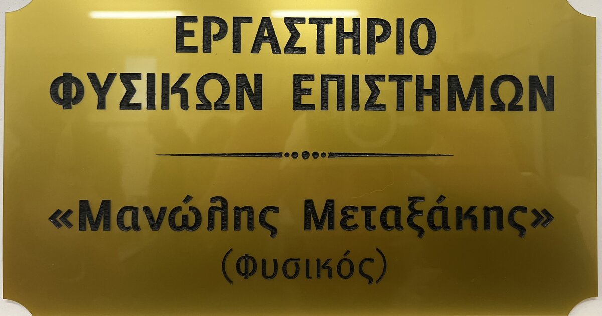 Σε μια σεμνή εκδήλωση πραγματοποιήθηκε την Δευτέρα 16 Δεκεμβρίου στο 4ο Γυμνάσιο Ηρακλείου η επίσημη παράδοση της δωρεάς σύγχρονου εξοπλισμού για το Εργαστήριο Φυσικών Επιστημών του σχολείου και η ονοματοδοσία του σε «Σχολικό Εργαστήριο Φυσικών Επιστημών – Μανώλης Μεταξάκης».