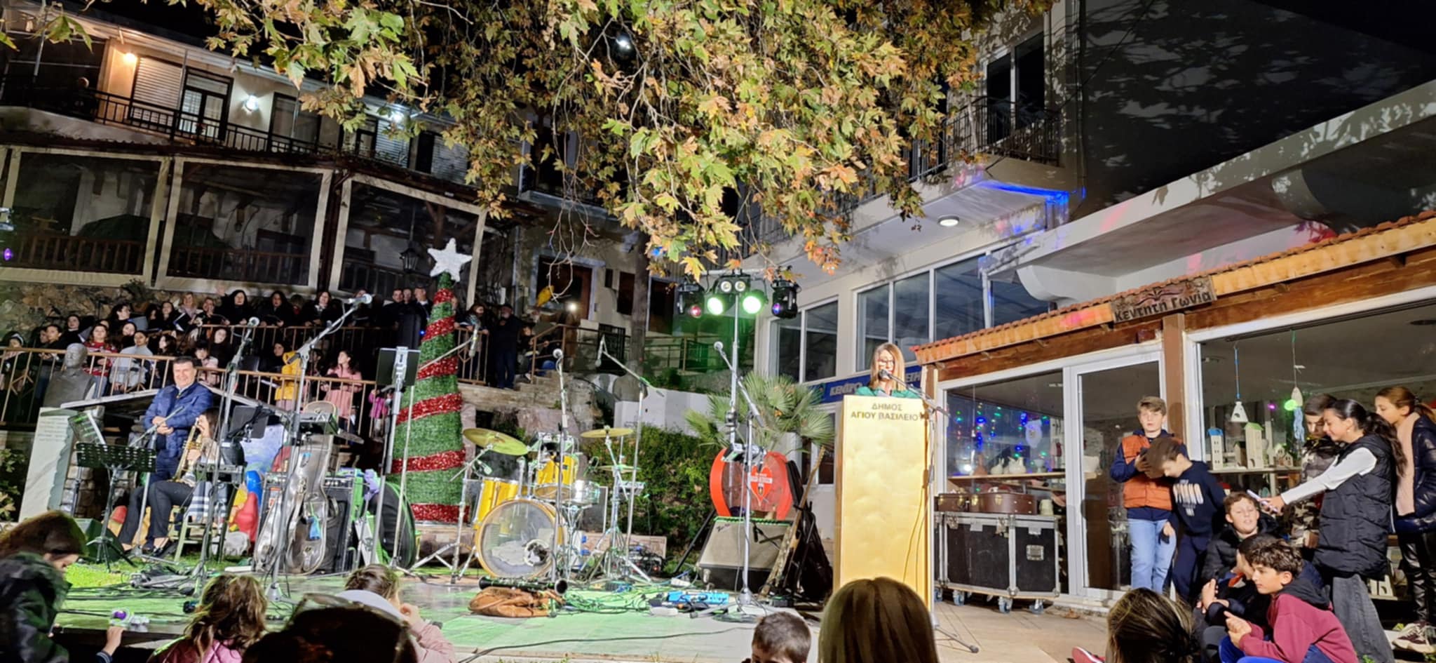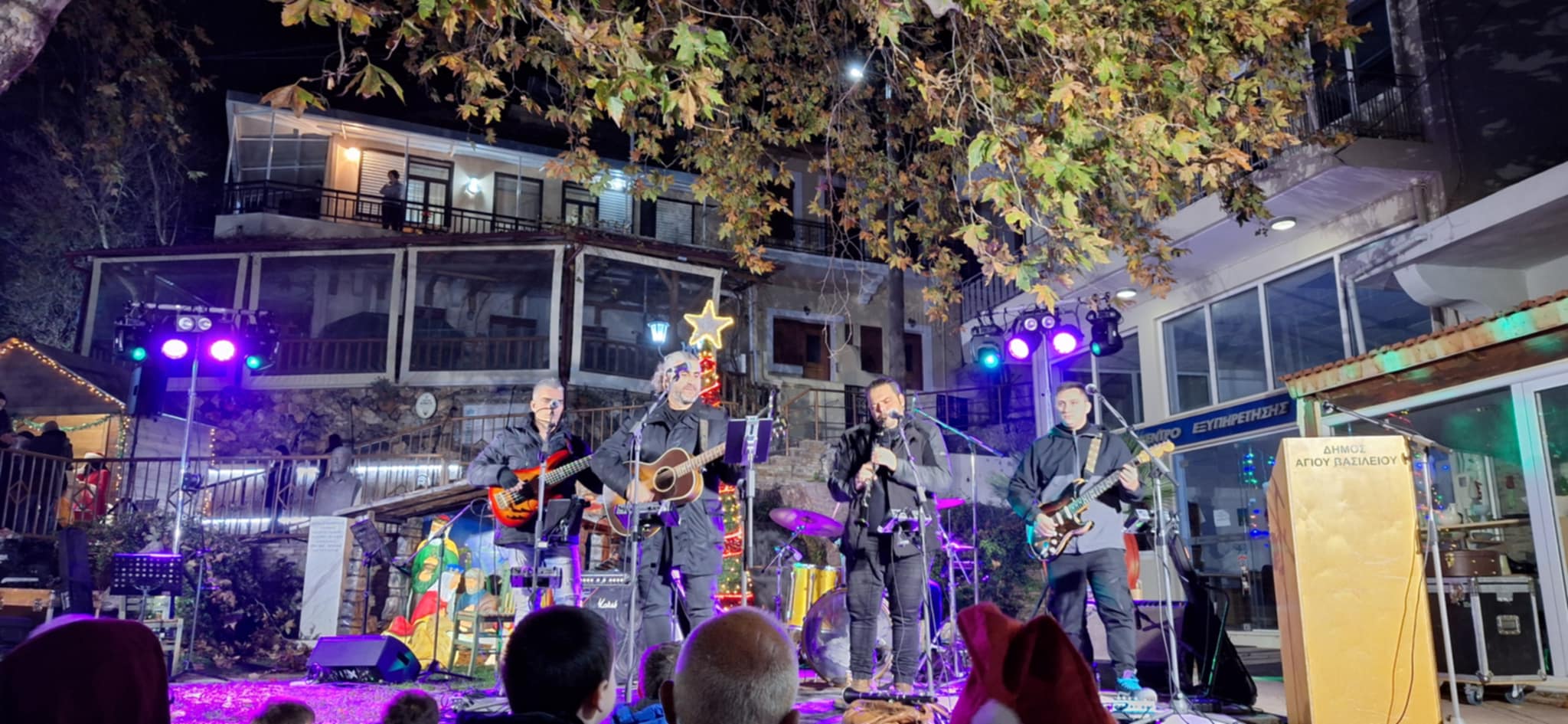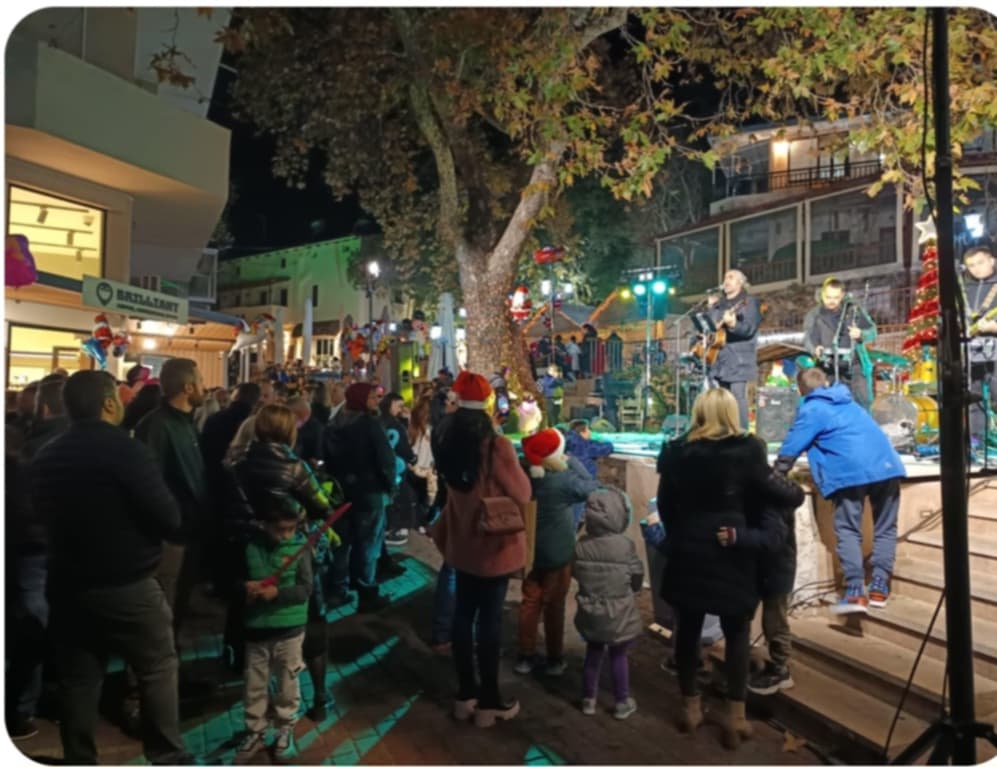 Μετά τη φωταγώγηση του Χριστουγεννιάτικου δέντρου από τον Δήμαρχο η πλατεία πλημμύρισε από μουσικές, γέλια και χαμόγελα. Η εκδήλωση συνεχίστηκε με μια αξέχαστη συναυλία από τον Μάνο Παπαδάκη και το συγκρότημά του.