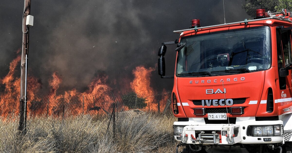Στην περιοχή πνέουν ισχυροί άνεμοι, ωστόσο η έγκαιρη επέμβαση των πυροσβεστών απέτρεψε τα χειρότερα