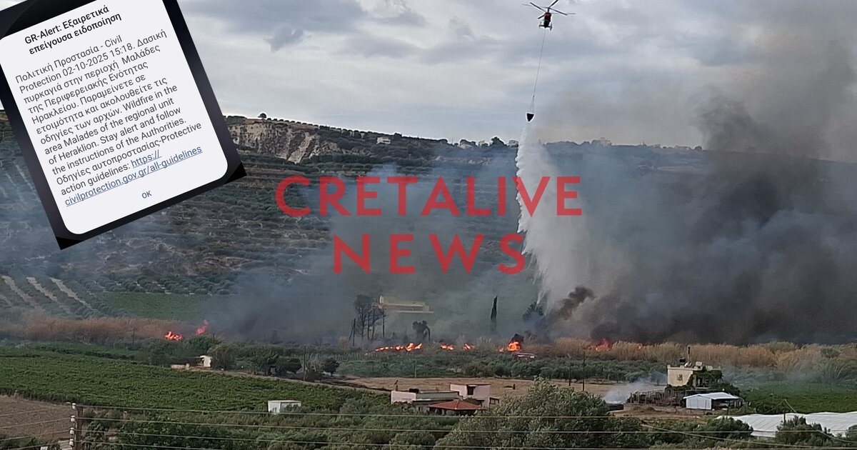 Εν τω μεταξύ, στα κινητά κατοίκων του Ηρακλείου ήρθε ειδοποίηση από το 112, ενώ προκλήθηκαν και διακοπές ρεύματος.