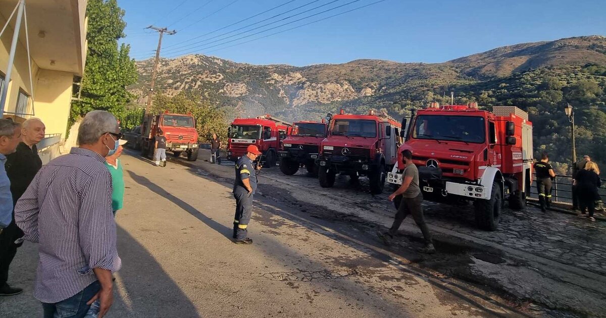 Οι φλόγες έχουν φτάσει κοντά σε σπίτια και όπως είπε ο Δήμαρχος Βιάννου Παύλος Μπαριτάκης, το χωριό εκκενώθηκε προληπτικά καθώς οι φλόγες "γλείφουν το χωριό".