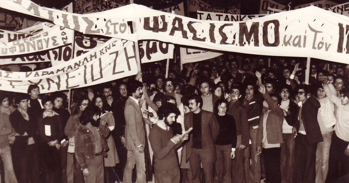κεντρική φωτογραφία: Συγκέντρωση για την πρώτη Επέτειο από την εξέγερση του Πολυτεχνείου στο Ηράκλειο