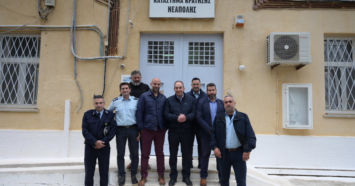 Ο Υπουργός Ναυτιλίας και Νησιωτικής Πολιτικής και βουλευτής ΝΔ Λασιθίου, Γιάννης Πλακιωτάκης, ανταποκρίθηκε με ταχύτητα και αποτελεσματικότητα στα αιτήματα της διεύθυνσης και των σωματείων των εργαζομένων στο Κατάστημα Κράτησης Νεαπόλεως. Αυτό δήλωσαν οι εκπρόσωποί τους, με τους οποίους συναντήθηκε σήμερα ο υπουργός, επισκεπτόμενος τις Φυλακές Νεαπόλεως. Στη συνάντηση έδωσαν το παρόν ο Διευθυντής του Καταστήματος Νικ. Βλάσης, ο Διοικητής Εξωτερικής Φρουράς υπαστυνόμος Εμμ. Ταμπακάκης, ο Αρχιφύλακας της Σωφρονιστικής Υπηρεσίας Ιωάννης Χουλάκης, ο πρόεδρος του Σωματείου Σωφρονιστικών υπαλλήλων Γεώργιος Βισκαδούρος, ο αντιπρόσωπος του σωματείου της Εξωτερικής Φρουράς στην Πανελλήνια Ένωση του κλάδου Λευτέρης Αλεξανδράκης κ.α.