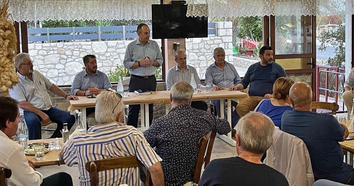 Στη συνάντηση στον Άγιο Ιωάννη παρέστησαν, ο Δήμαρχος Ιεράπετρας Μανόλης Φραγκούλης, οι Αντιδήμαρχοι Γεώργιος Κουγιουμουτζάκης, Νεκτάριος Παπαδάκης και Γεώργιος Γιακουμάκης, ο Πρόεδρος της Τ.Κ. Αγίου Ιωάννη Εμμ. Λαθουράκης, ο Πρόεδρος της ΔΕΕΠ Λασιθίου της Ν.Δ. Γεώργιος Μπαρμπούνης και ο Πρόεδρος της Τ.Ε. Ν.Δ. Ιεράπετρας Κων. Κατσιδονιωτάκης κ.α.