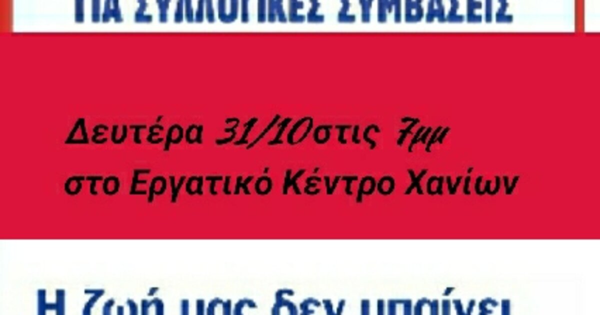 - Όλοι στην Γενική Συνέλευση του Σωματείου Οκτωβρίου 7μμ στο Εργατικό Κέντρο Χανίων