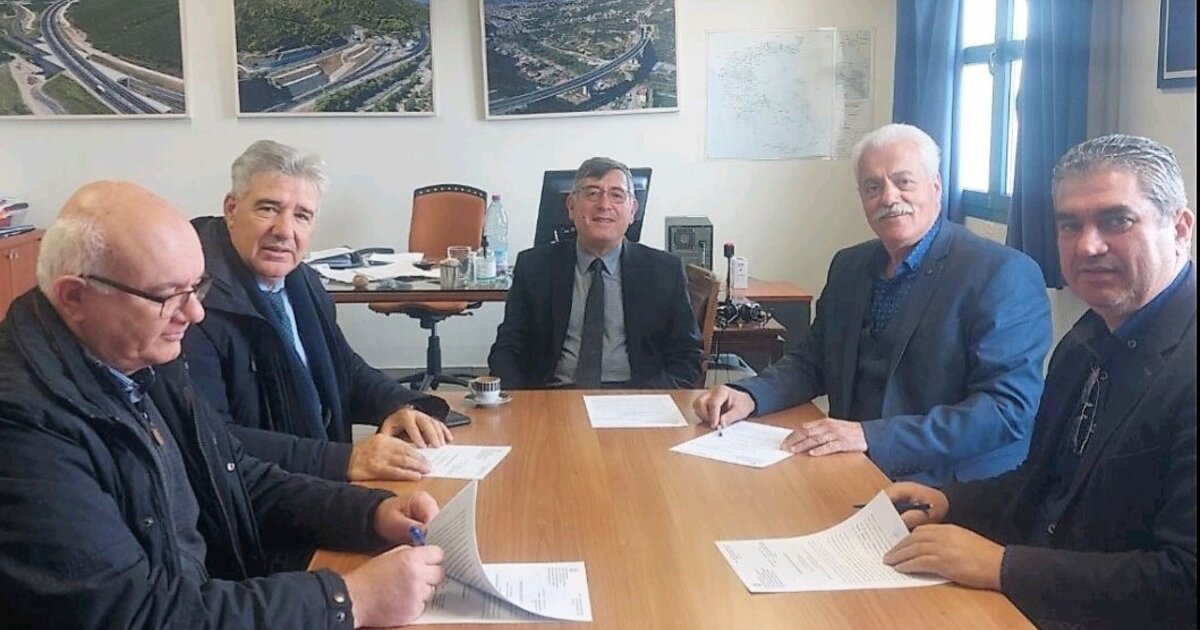 Η υπογραφή της σύμβασης που αφορά τα «Έργα Βελτίωσης Οδικής Ασφάλειας» στο Τμήμα «Γεωργιούπολη – Πετρές» - εντός των διοικητικών ορίων του Δήμου Αποκορώνου – στο Βόρειο Οδικό Άξονα Κρήτης, έγινε την Πέμπτη 09/02/2023 στην Αθήνα, στο γραφείου του Γενικού Διευθυντή Συγκοινωνιακών Υποδομών του Υπουργείου Υποδομών και Μεταφορών, κ. Γιάννη Καρνέση, υπό την παρουσία του Διευθύνοντος Συμβούλου του Οργανισμού Ανάπτυξης Κρήτης, κ. Άρη Παπαδογιάννη και του Δημάρχου Αποκορώνου, κ. Χαράλαμπου Κουκιανάκη.
