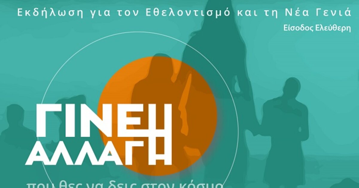 «Έλα να εμπνευστείς και να γίνεις μέρος της αλλαγής!», είναι το σύνθημα της εκδήλωσης που στοχεύει ν’ αναδείξει τον ρόλο του εθελοντισμού ως μοχλό προσωπικής ανάπτυξης, κοινωνικής συμμετοχής και συλλογικής προσφοράς. Μέσα από ένα δημιουργικό και διαδραστικό πρόγραμμα, νέοι και νέες θα έχουν την ευκαιρία να γνωρίσουν οργανώσεις, να ανταλλάξουν εμπειρίες και να ανακαλύψουν πώς μπορούν να συμβάλουν ενεργά στη διαμόρφωση μιας πιο ανθρώπινης και δίκαιης κοινωνίας", τονίζεται σε σχετική ανακοίνωση.