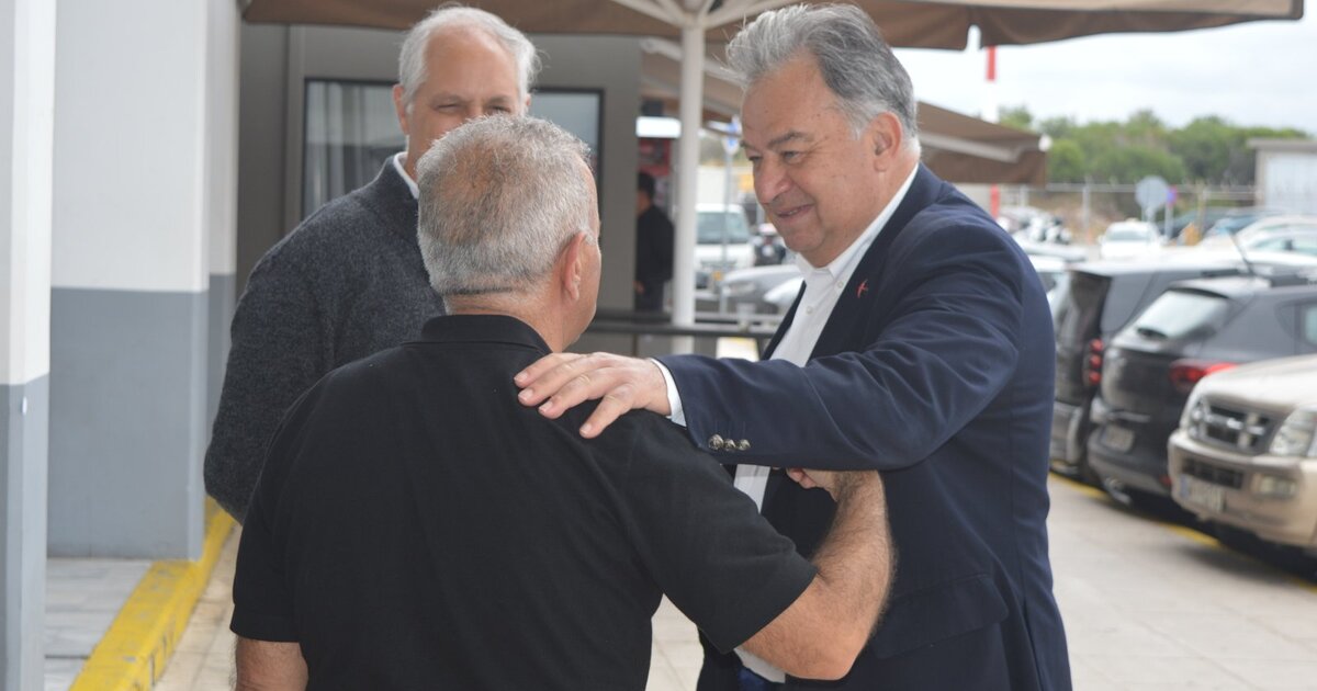 Ο κ. Λογιάδης συναντήθηκε και συνομίλησε με τον αερολιμενάρχη Ηρακλείου, Γιώργο Πλιάκα, όπως επίσης και με τον πρόεδρο του Πανελληνίου Συλλόγου Αερολιμενικών, Μανώλη Καμηλάκη, και εργαζόμενους.