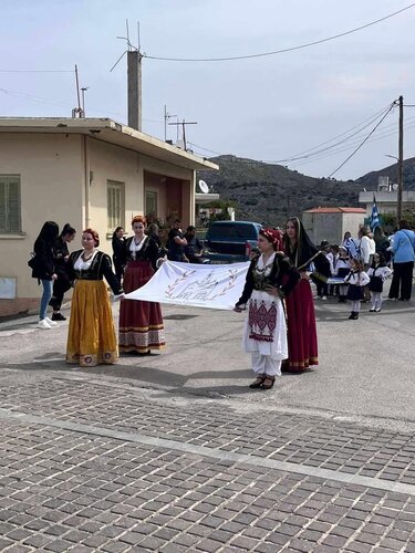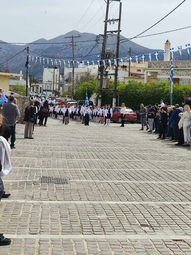 Η παρέλαση των μαθητών ξεχώρισε, ενώ όλα τα βλέμματα τράβηξε και ο 94χρονος Γεώργιος Διαμαντάκης που ως "σημαιοφόρος" του ενεργού Πολιτιστικού & Λαογραφικού Συλλόγου της περιοχής, σήκωσε το λάβαρο του Συλλόγου για τα 50 χρόνια ενεργής παρουσίας του.