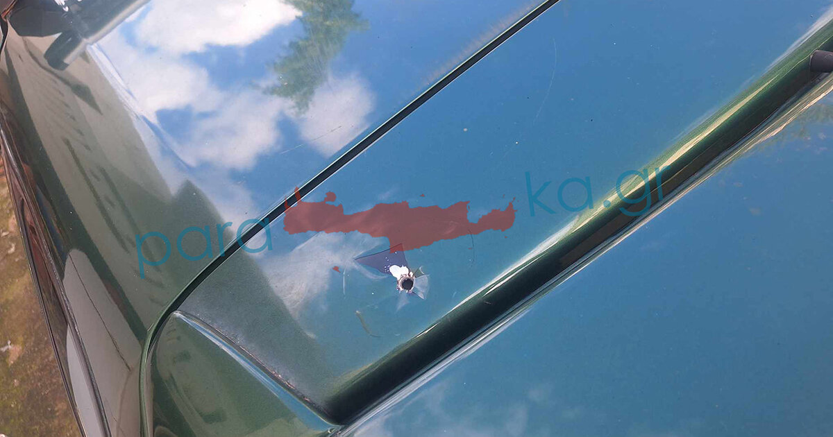Το περιστατικό συνέβη στην περιοχή της Χαλέπας, στα Χανιά και όπως φαίνεται στις φωτογραφίες, η σφαίρα έπεσε κατακόρυφα στο αυτοκίνητο.