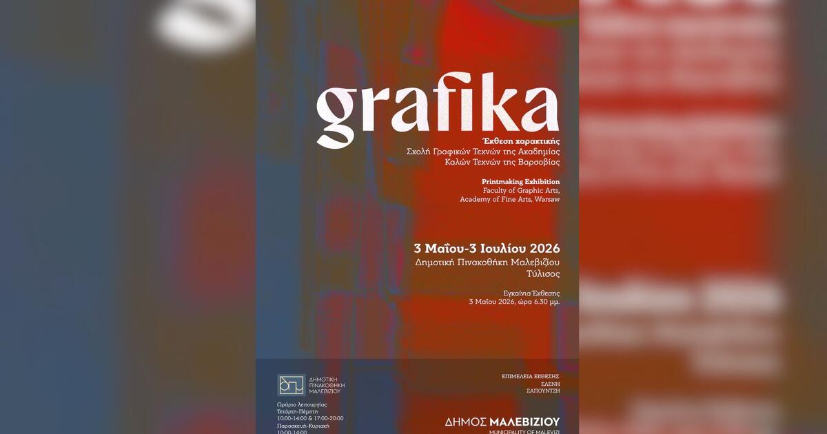 Η Δημοτική Πινακοθήκη Μαλεβιζίου σε συνδιοργάνωση με τον Δήμο Μαλεβιζίου, φιλοξενεί την πρώτη διεθνή της έκθεση, με τίτλο GRAFIKA, όπου παρουσιάζονται 37 έργα 18 διδασκόντων και διδακτόρων της Ακαδημίας Καλών Τεχνών της Βαρσοβίας. Την έκθεση επιμελείται η Ελένη Σαπουντζή, επιμελήτρια της Δημοτικής Πινακοθήκης Μαλεβιζίου και τα εγκαίνια θα πραγματοποιηθούν την Κυριακή 03 Μάϊου στις 18:30.