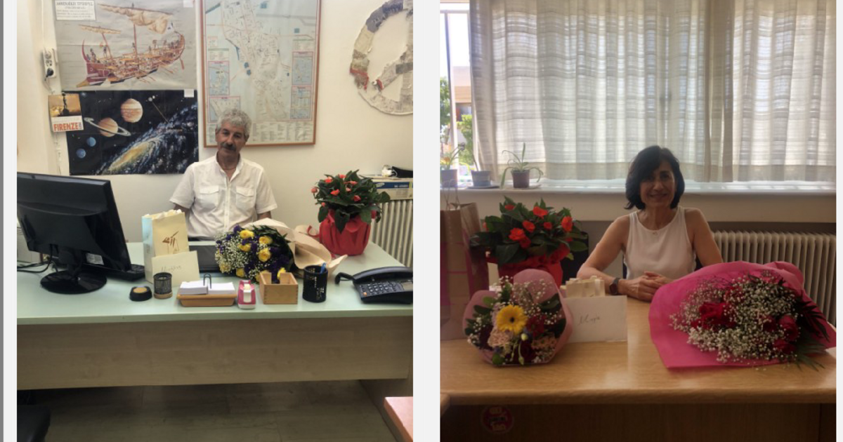 "Με βαθιά συγκίνηση και ευγνωμοσύνη η Διεύθυνση και ο Σύλλογος Διδασκόντων του Γυμνασίου Νέας Αλικαρνασσού αποχαιρετούμε δύο αγαπητούς συναδέλφους εκπαιδευτικούς που ολοκληρώνουν την εκπαιδευτική τους πορεία και ξεκινούν το νέο κεφάλαιο της συνταξιοδότησης.
