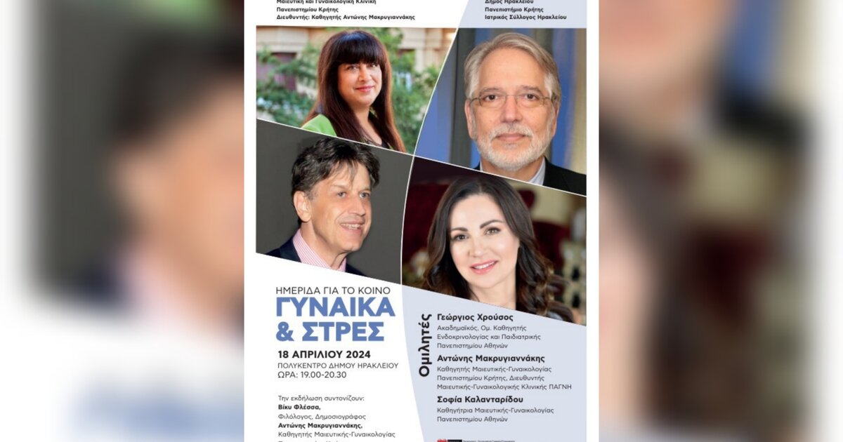 Τα θέματα αυτά θα αναπτύξουν στις 18 Απριλίου 2024, στην αίθουσα Πολύκεντρου, στις 19.00, ο Ακαδημαϊκός και Ομότιμος Καθηγητής του Πανεπιστημίου Αθηνών κ. Γεώργιος Χρούσος, ο Καθηγητής και Διευθυντής της Μαιευτικής και Γυναικολογικής Κλινικής του Πανεπιστημιακού Γενικού Νοσοκομείου Ηρακλείου κ. Αντώνης Μακρυγιαννάκης και η Καθηγήτρια Μαιευτικής και Γυναικολογίας του Πανεπιστημίου Αθηνών, κ. Σοφία Καλανταρίδου.