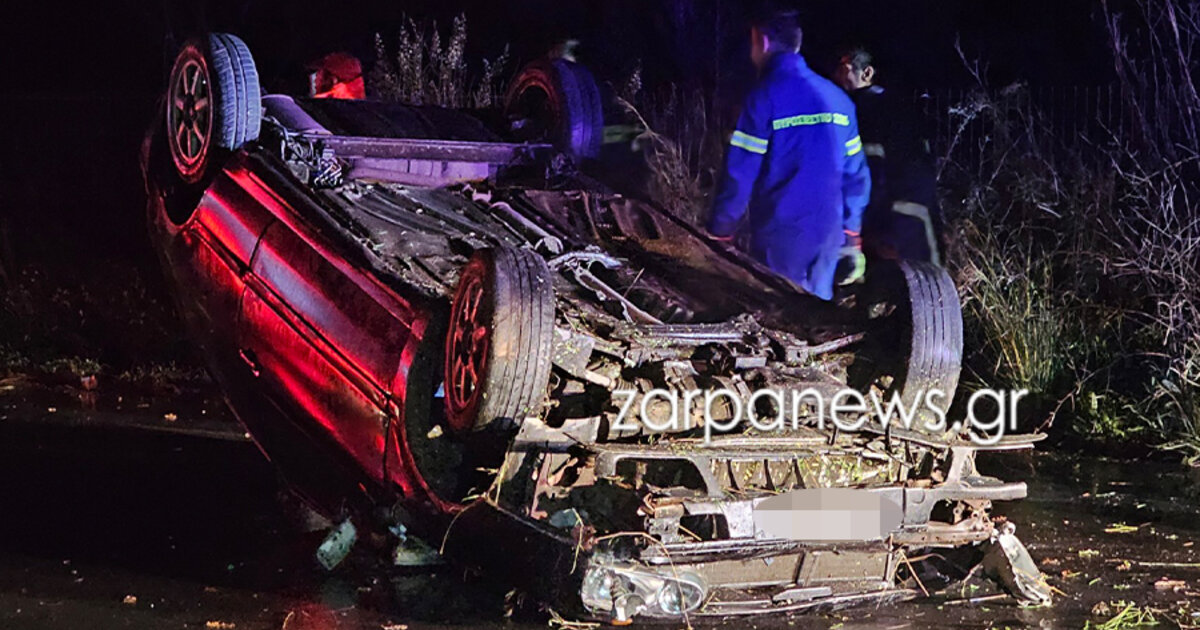 Χανιά: Αυτοκίνητο αναποδογύρισε στον δρόμο