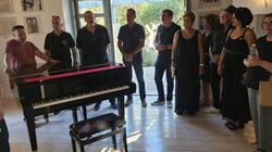 Η δράση είχε ξεκινήσει νωρίς το απόγευμα, με την επίσκεψη του ΠΣΚ στον τάφο του Θεοδωράκη και στο πατρικό του σπίτι στον Γαλατά Χανίων, κατά την διάρκεια της οποίας ξεναγήθηκαν από τον Ματθαίο Φραντζεσκάκη εκ μέρους του Παγκρήτιου Συλλόγου Φίλων Μίκη Θεοδωράκη και τους αντιδημάρχους Πολιτισμού των δήμων Χανίων και Νέας Κυδωνίας, Γιάννη Γιαννακάκη και Γιάννη Δρακάκη, αντίστοιχα.