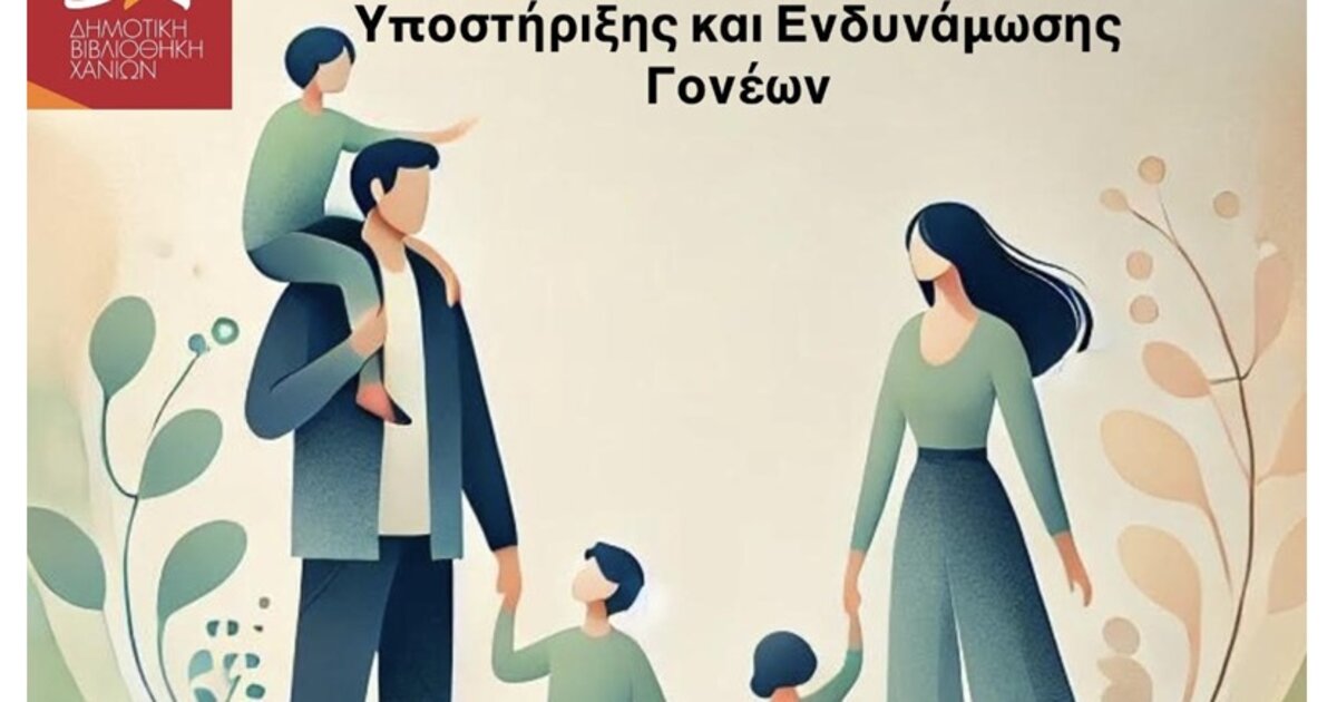 Ο Συμβουλευτικός Σταθμός της Διεύθυνσης Κοινωνικής Προστασίας του Δήμου Χανίων σε συνεργασία με τη Δημοτική Βιβλιοθήκη Χανίων, έχοντας ως στόχο την πρόληψη και προαγωγή Ψυχικής Υγειάς στην οικογένεια, υλοποιεί νέους κύκλους ενημερωτικών συναντήσεων για γονείς, κατά τις περιόδους, από τον Νοέμβριο 2024 έως τον Φεβρουάριο 2025 και από Μάρτιο έως τον Μάϊο 2025.