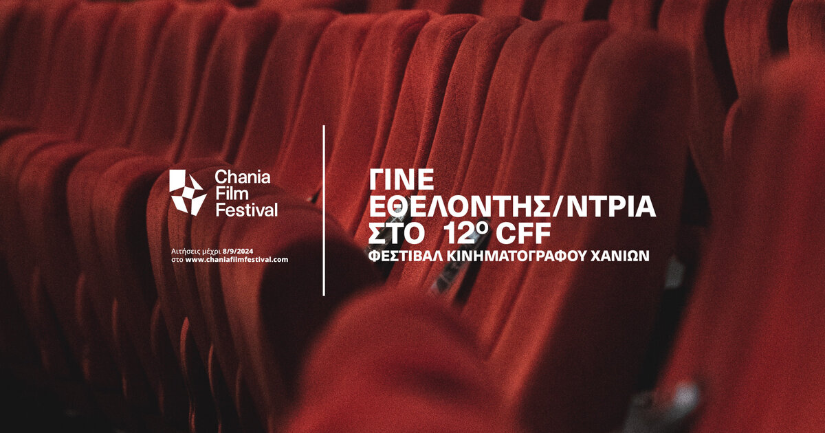 Πρόσκληση σε εθελοντές απευθύνει το Φεστιβάλ Κινηματογράφου Χανίων για την 12η διοργάνωσή του, που θα πραγματοποιηθεί από τις 16 Οκτωβρίου έως και τις 27 Οκτωβρίου 2024, σε φυσική και online μορφή.
