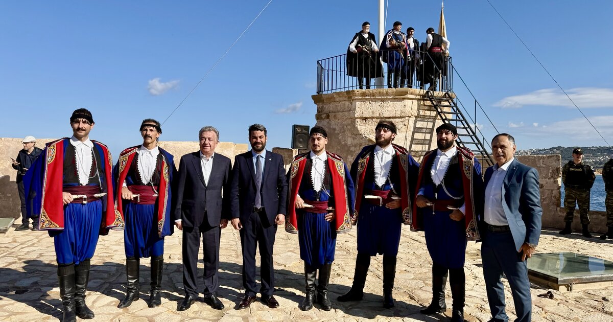 Στο φρούριο του Φιρκά, εκεί όπου κάποτε φυλακίζονταν οι αγωνιστές, βρέθηκαν πλάι-πλάι η εμπειρία, η πολιτική διορατικότητα και η μακραίωνη κρητική γενναιότητα. Ο Βασιλιάς Κωνσταντίνος και ο Πρωθυπουργός της Ελλάδας Ελευθέριος Βενιζέλος, στέκονταν δίπλα σε δύο σεβάσμιες μορφές της κρητικής λεβεντιάς, τον Χατζημιχάλη Γιάνναρη και τον Αναγνώστη Μάντακα. Οι δύο γέροντες, κουβαλώντας το βάρος δεκαετιών αγώνα, έγιναν οι σιωπηλοί εκπρόσωποι όλων όσοι είχαν δώσει τη ζωή τους για να φτάσει η μέρα εκείνη.