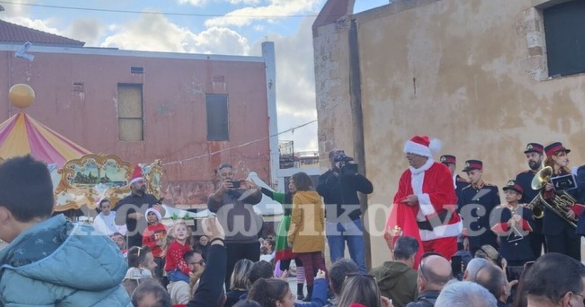 Ο Άγιος Βασίλης κατέφτασε πάνω από το ενετικό λιμάνι με paraglide και με τις οδηγίες των παιδιών κατάφερε να ξεφύγει από τους “Κακόμαυρους” που με τα jet ski και τα κανό τους προσπαθούσαν να τον εμποδίσουν. Έπειτα ο Άγιος Βασίλης παρέσυρε τους διώκτες του στα ανοικτά και επέστρεψε με σκάφος. Γύρω από το δέντρο μοίρασε δώρα στα παιδιά ενώ στην εξέδρα η φιλαρμονική του Δήμου απέδωσε χριστουγεννιάτικα μουσικά κομμάτια.