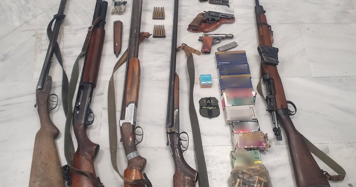 Κατασχέθηκαν μεταξύ άλλων, πολεμικό τυφέκιο, 2 πιστόλια, περίστροφο, κυνηγετικά όπλα, 595 φυσίγγια