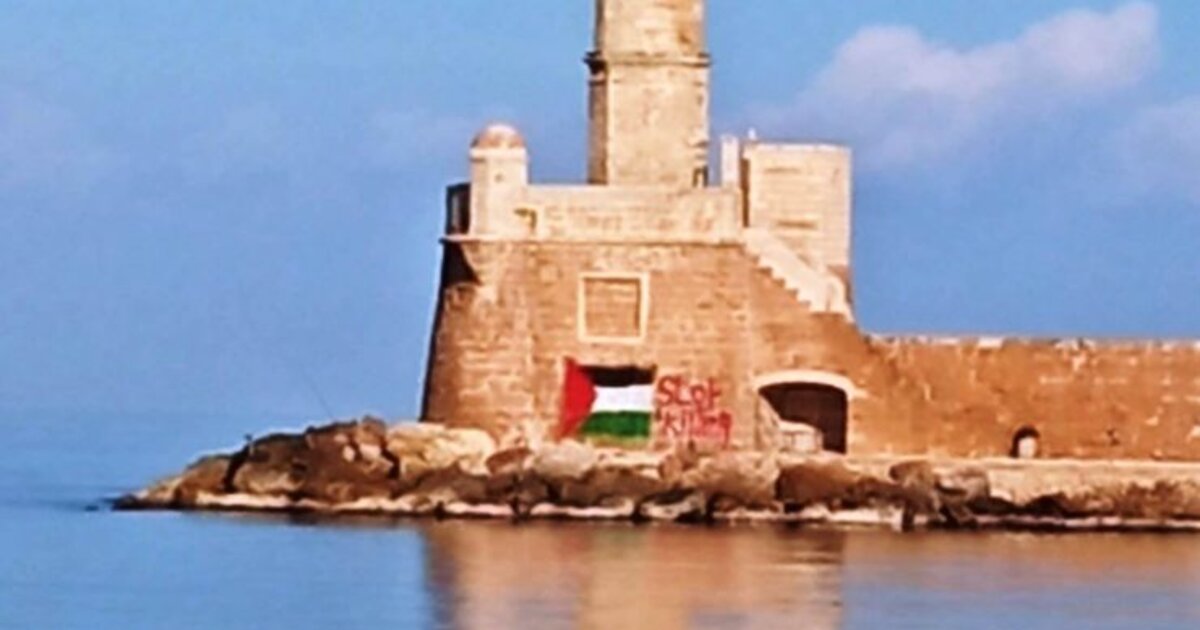 Χανιά: Ζωγράφισαν την Παλαιστινιακή σημαία στο Φάρο