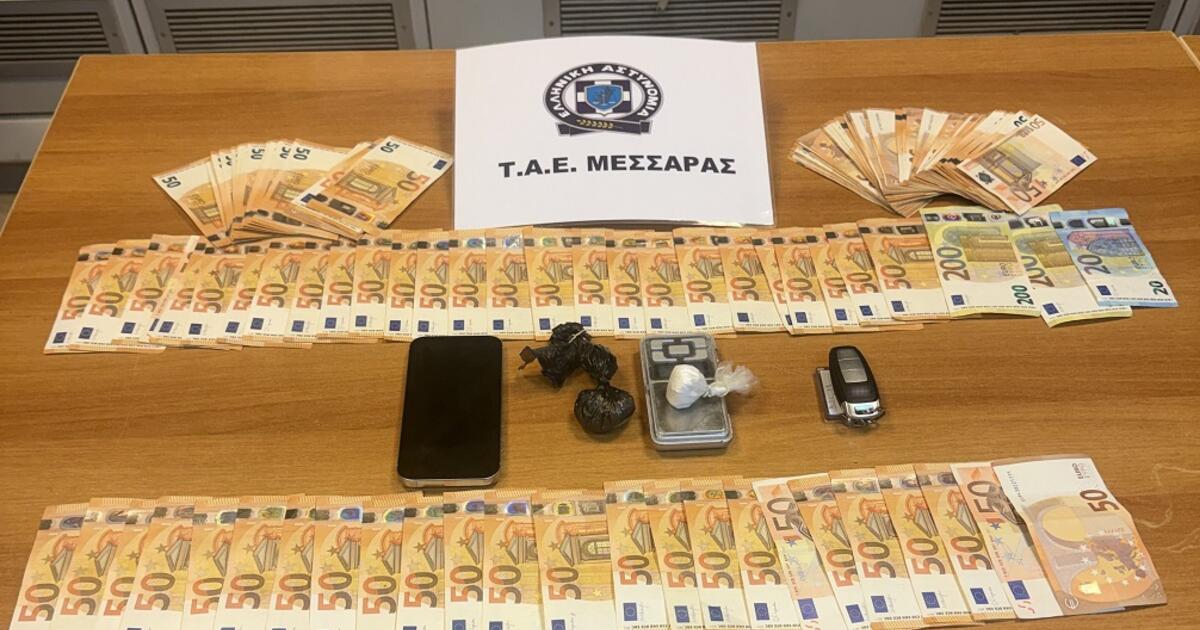Χειροπέδες σε 25χρονο στη Μεσσαρά για κοκαϊνη - Βρέθηκαν περίπου 8000 ευρώ σε μετρητά