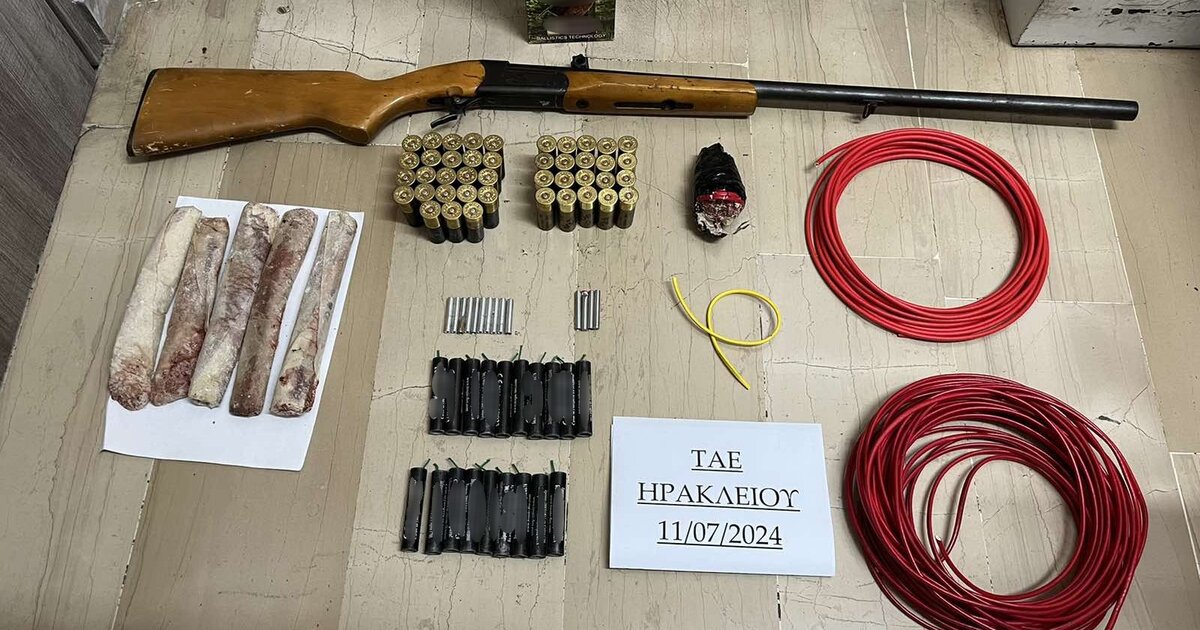 Συνελήφθη (11.07.2024) το πρωί σε περιοχή του Δήμου Χερσονήσου, από αστυνομικούς του Αστυνομικού Τμήματος Χερσονήσου και του Τμήματος Αστυνομικών Επιχειρήσεων Ηρακλείου, ημεδαπός κατηγορούμενος για παραβάσεις της νομοθεσίας περί όπλων και περί εκρηκτικών υλών και μηχανημάτων.